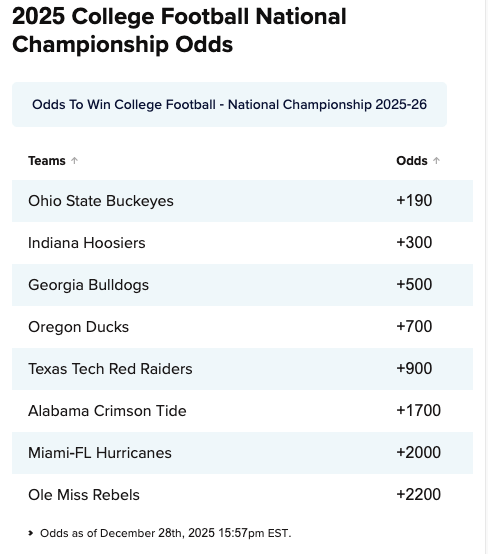 Per Vegas, Ohio State is the favorite to win it all in a pretty open and competitive field.
