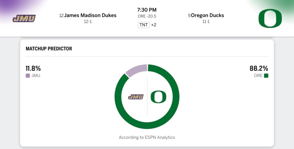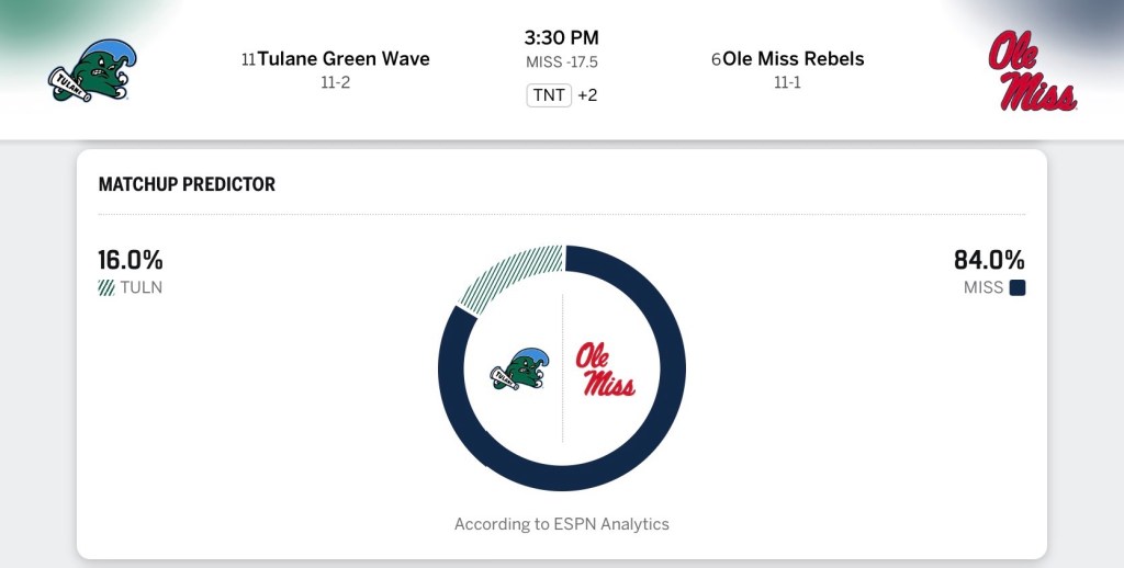 Per Vegas, today’s games include a coin toss and two potential blowouts. Hopefully, the underdogs can put up a good fight.