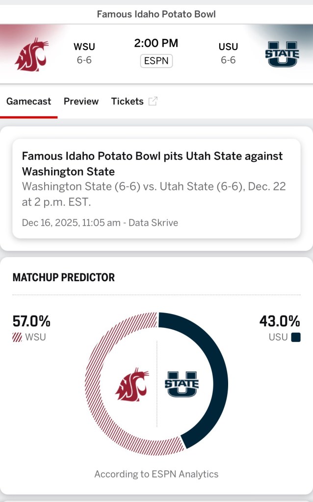 Our picks almost mirror ESPN with 60% selecting Washington State, including all 3 of the 5-0 players.