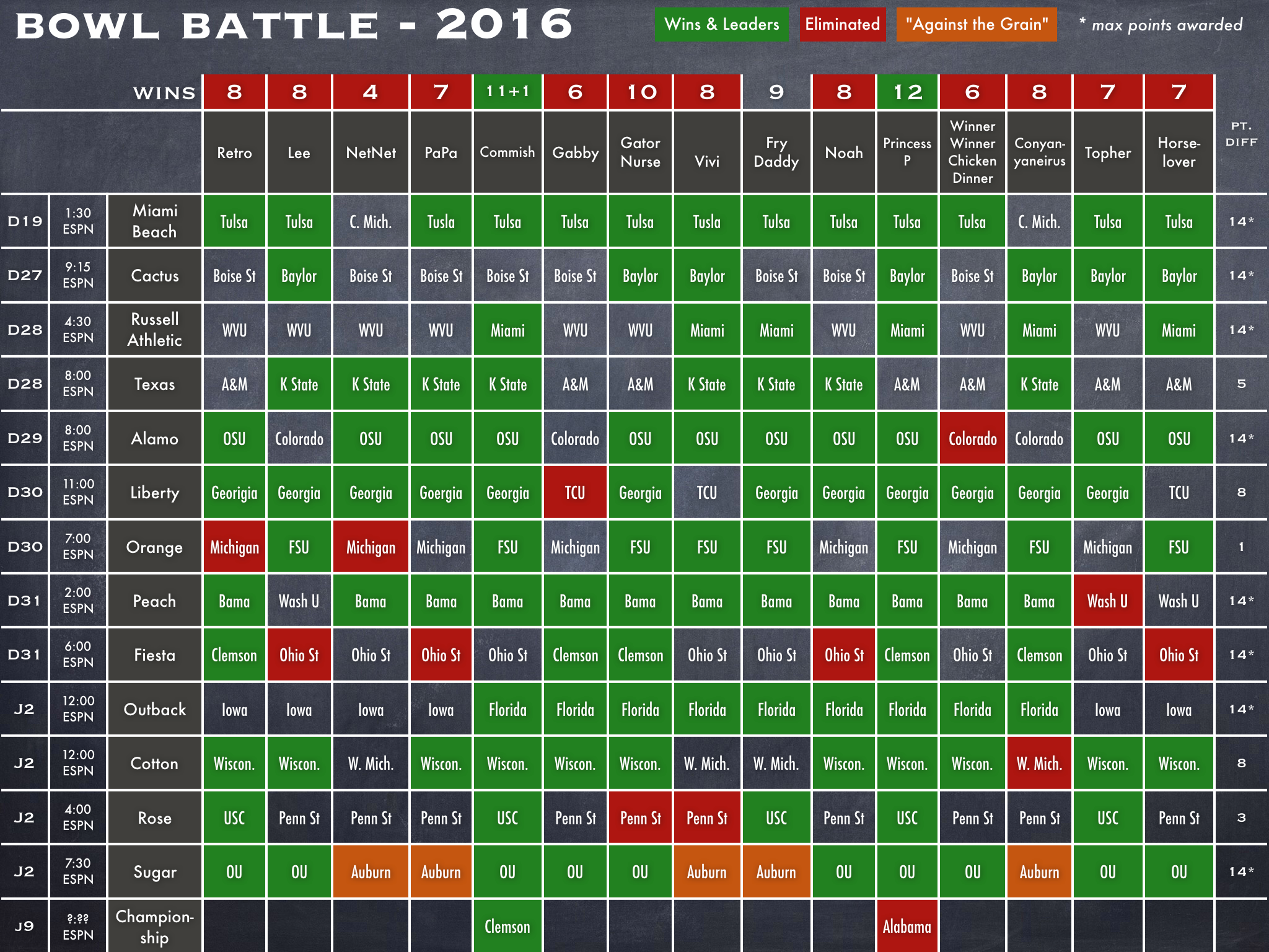 Paden’s selection of Alabama was sound as they entered a 7-point favorite and were the defending champions. But it just wasn’t meant to be for the P.